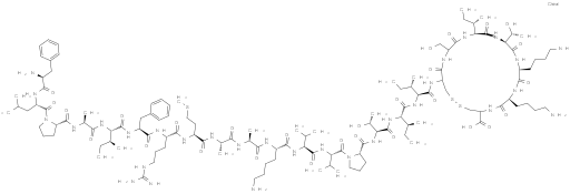 CSCC[C@@H](C(O)=O)NC([C@H](CCCNC(N)=N)NC([C@H](CCC(N)=O)NC([C@@H](NC([C@H](CCCCN)NC(CNC([C@H]([C@H](O)C)NC([C@H](CCCNC(N)=N)NC([C@H](CCCNC(N)=N)NC([C@H](CC(N)=O)N1)=O)=O)=O)=O)=O)=O)CSSC[C@H](NC([C@@H](NC([C@@H](NC([C@@H](NC([C@H]2N(C([C@H](C(C)C)NC([C@H]3N(C([C@H](CCCCN)NC([C@H](CCCCN)NC([C@H](CO)NC(CN)=O)=O)=O)=O)CCC3)=O)=O)CCC2)=O)[C@@H](C)CC)=O)[C@@H](C)CC)=O)CC4=CC=C(O)C=C4)=O)C1=O)=O)=O)=O