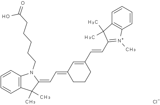 Home > Product Catalog > Building Blocks > Indoles > 1-(5-Carboxypentyl)-3,3-dimethyl-2-((1E,3E,5E)-5-(1,3,3-trimethylindolin-2-ylidene)penta-1,3-dien-1-yl)-3H-indol-1-ium chloride