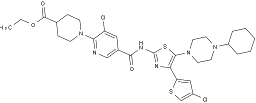 ethyl 1-(3-chloro-5-((4-(4-chlorothiophen-2-yl)-5-(4-cyclohexylpiperazin-1-yl)thiazol-2-yl)carbamoyl)pyridin-2-yl)piperidine-4-carboxylate